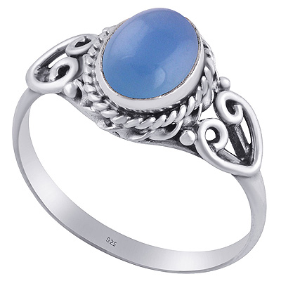Gorgeous Twisted Wire Work Around Blue Chalcedony Oval Shape 925 Sterling Solid Silver Ring