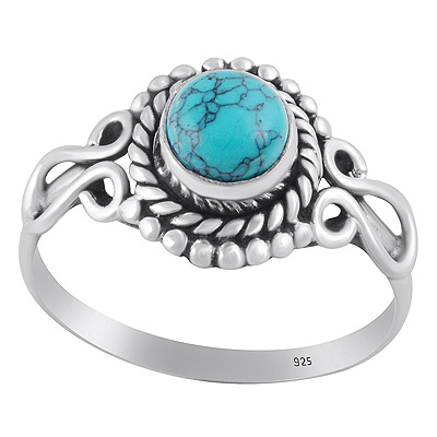 Gorgeous Handcrafted Work Around Turquoise Round Shape 925 Sterling Solid Silver Ring