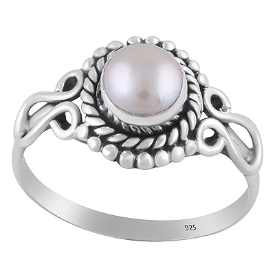 Gorgeous Handcrafted Work Around Pearl Round Shape 925 Sterling Solid Silver Ring