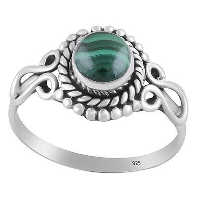 Gorgeous Handcrafted Work Around Malachite Round Shape 925 Sterling Solid Silver Ring