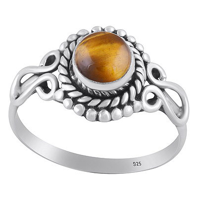Gorgeous Handcrafted Work Around Tiger's Eye Round Shape 925 Sterling Solid Silver Ring