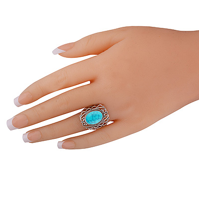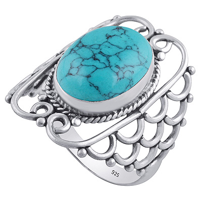 Gorgeous Hand Work on Shank Turquoise Oval Shape 925 Sterling Solid Silver Ring