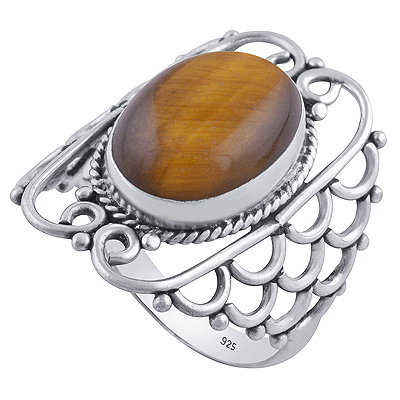Gorgeous Hand Work on Shank Tiger's Eye Oval Shape 925 Sterling Solid Silver Ring