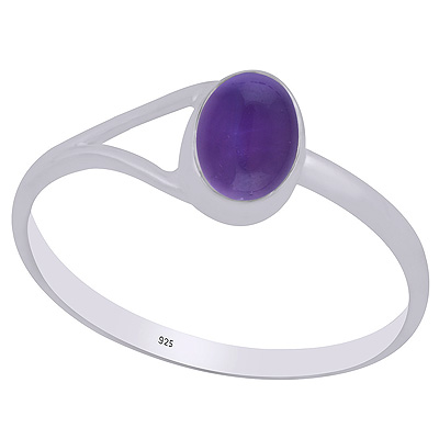 Unique One Sided Split Shank Amethyst Oval Shape 925 Sterling Solid Silver Ring