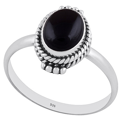 Stunning Rawa & Handwork Around Black Onyx Oval Shape 925 Sterling Solid Silver Ring