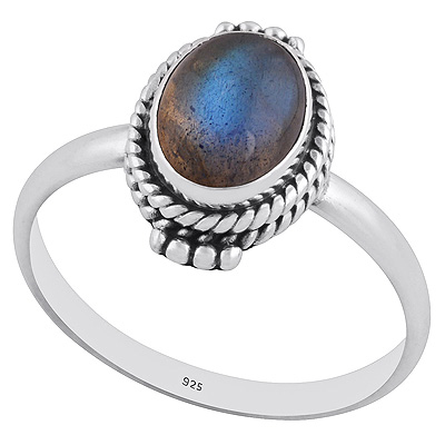 Stunning Rawa & Handwork Around Labradorite Oval Shape 925 Sterling Solid Silver Ring