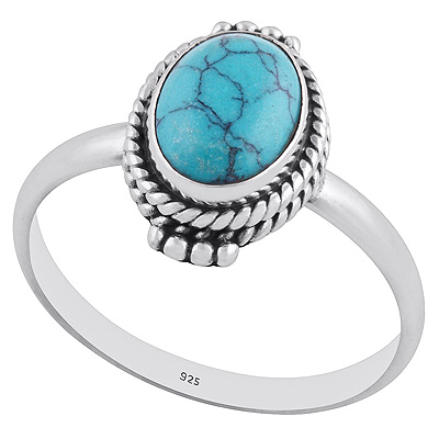 Stunning Rawa & Handwork Around Turquoise Oval Shape 925 Sterling Solid Silver Ring