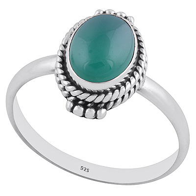 Stunning Rawa & Handwork Around Green Onyx Oval Shape 925 Sterling Solid Silver Ring