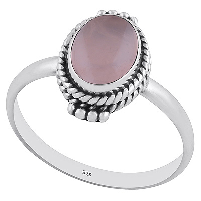 Stunning Rawa & Handwork Around Rose Quartz Oval Shape 925 Sterling Solid Silver Ring