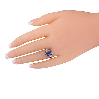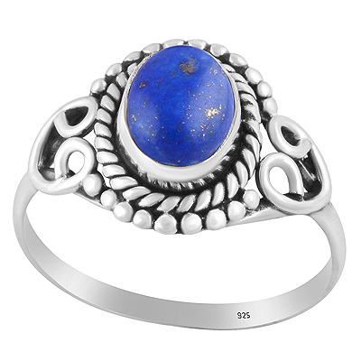 Stunning Work & Rawa Work Around Lapis Oval Shape 925 Sterling Solid Silver Ring