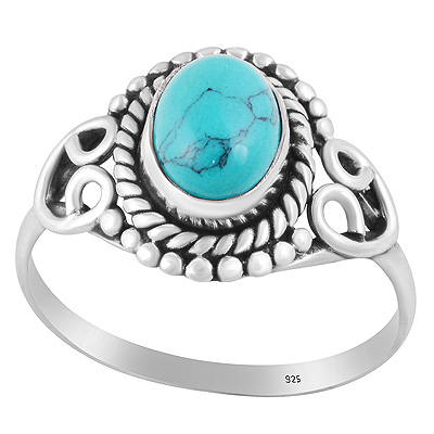 Stunning Work & Rawa Work Around Turquoise Oval Shape 925 Sterling Solid Silver Ring
