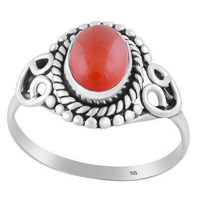 Stunning Work & Rawa Work Around Carnelian Oval Shape 925 Sterling Solid Silver Ring