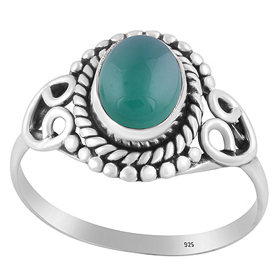 Stunning Work & Rawa Work Around Green Onyx Oval Shape 925 Sterling Solid Silver Ring