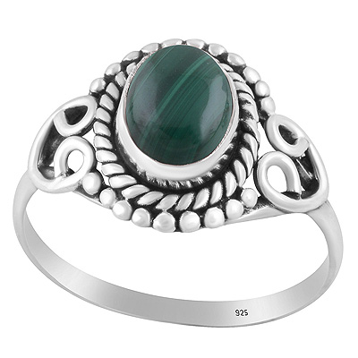Stunning Work & Rawa Work Around Malachite Oval Shape 925 Sterling Solid Silver Ring