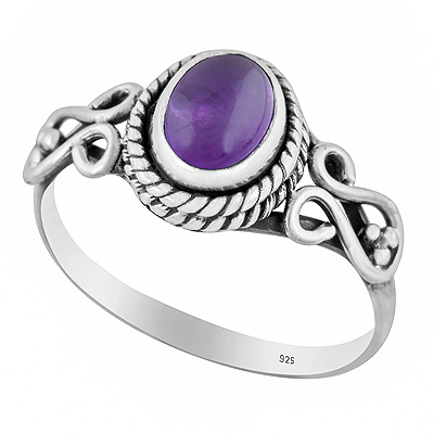Gorgeous Handwork Around Amethyst Oval Shape 925 Sterling Solid Silver Ring