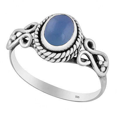 Gorgeous Handwork Around Blue Chalcedony Oval Shape 925 Sterling Solid Silver Ring