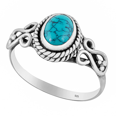 Gorgeous Handwork Around Turquoise Oval Shape 925 Sterling Solid Silver Ring