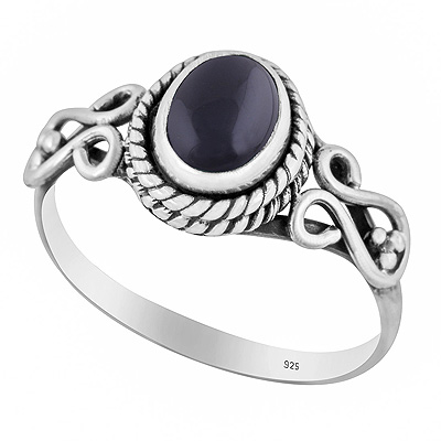 Gorgeous Handwork Around Black Onyx Oval Shape 925 Sterling Solid Silver Ring