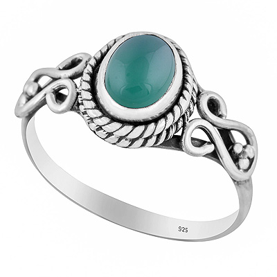 Gorgeous Handwork Around Green Onyx Oval Shape 925 Sterling Solid Silver Ring