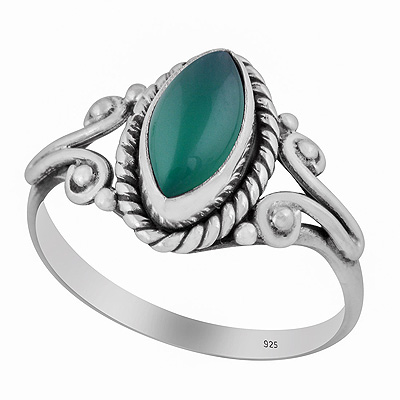 Gorgeous Twisted Wire Work Around Green Onyx Marquise Shape 925 Sterling Solid Silver Ring