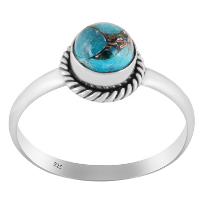 Authentic Wire Work Around Blue Copper Turquoise Round Shape 925 Sterling Solid Silver Ring