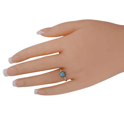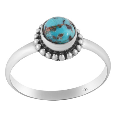 Classic Rawa Work Around Blue Copper Turquoise Round Shape 925 Sterling Solid Silver Ring