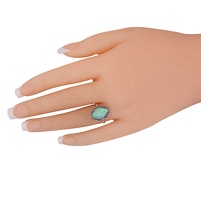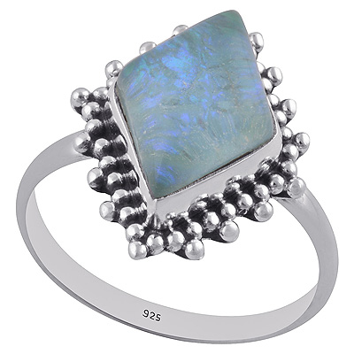 Beautiful Rawa Work Around Opal Rhombus Shape 925 Sterling Solid Silver Ring