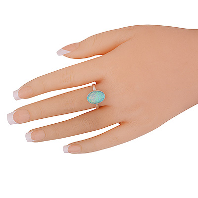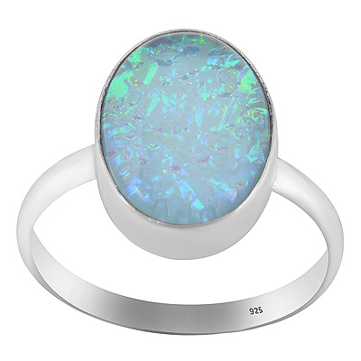 Beautiful Plain Collet Opal Oval Shape 925 Sterling Solid Silver Ring