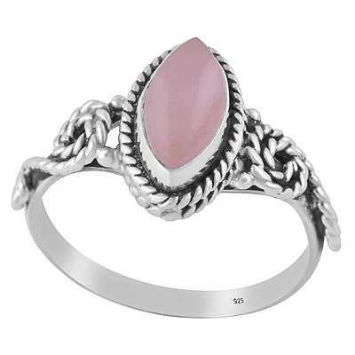 Alluring Handwork Around Rose Quartz Marquise Shape 925 Sterling Solid Silver Ring
