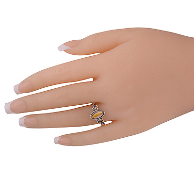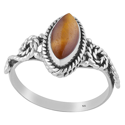 Alluring Handwork Around Tiger's Eye Marquise Shape 925 Sterling Solid Silver Ring