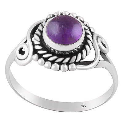 Beautifully Handcrafted Work Around Amethyst Round Shape 925 Sterling Solid Silver Ring