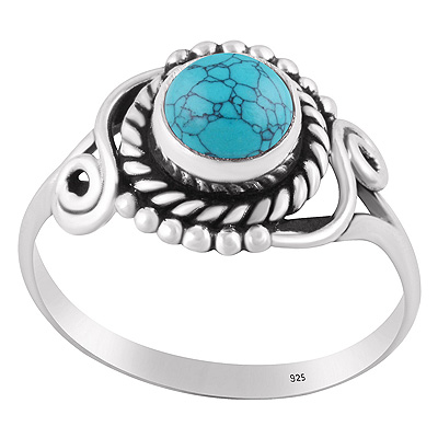 Beautifully Handcrafted Work Around Turquoise Round Shape 925 Sterling Solid Silver Ring