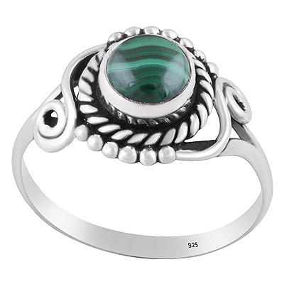 Beautifully Handcrafted Work Around Malachite Round Shape 925 Sterling Solid Silver Ring