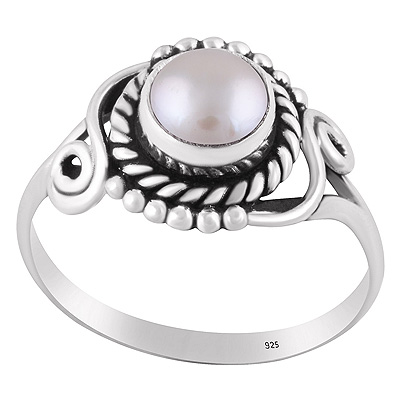 Beautifully Handcrafted Work Around Pearl Round Shape 925 Sterling Solid Silver Ring