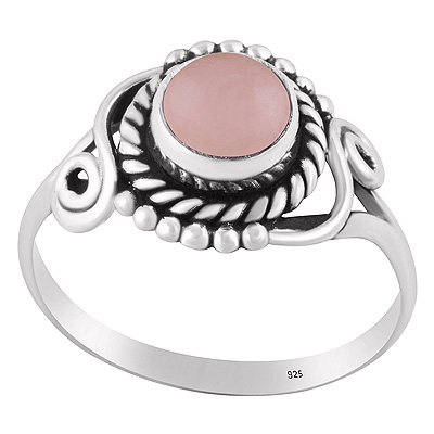 Beautifully Handcrafted Work Around Rose Quartz Round Shape 925 Sterling Solid Silver Ring