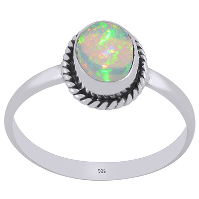 Authentic Wire Work Around Ethiopian Opal Oval Shape 925 Sterling Solid Silver Ring
