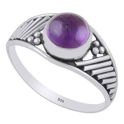 Stunning Wire & Rawa Work Around Amethyst Round Shape 925 Sterling Solid Silver Ring