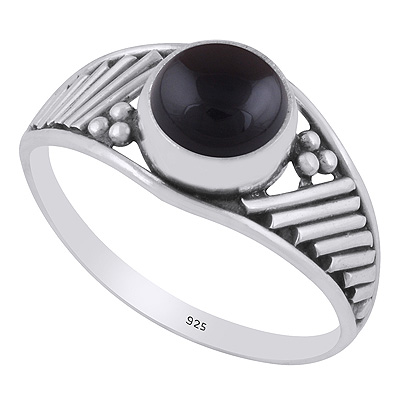 Stunning Wire & Rawa Work Around Black Onyx Round Shape 925 Sterling Solid Silver Ring