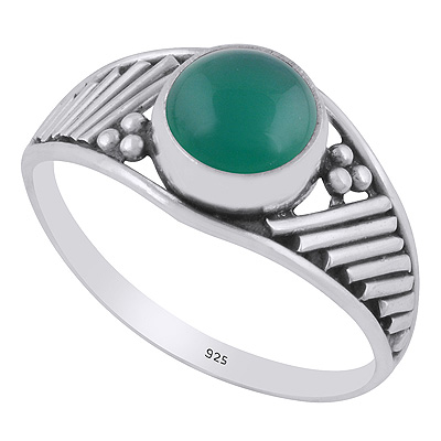 Stunning Wire & Rawa Work Around Green Onyx Round Shape 925 Sterling Solid Silver Ring