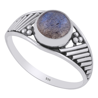 Stunning Wire & Rawa Work Around Labradorite Round Shape 925 Sterling Solid Silver Ring