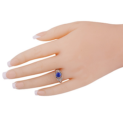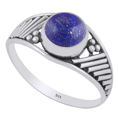 Stunning Wire & Rawa Work Around Lapis Round Shape 925 Sterling Solid Silver Ring