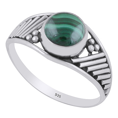 Stunning Wire & Rawa Work Around Malachite Round Shape 925 Sterling Solid Silver Ring