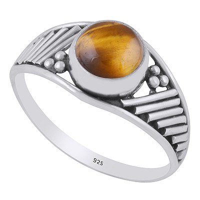 Stunning Wire & Rawa Work Around Tiger's Eye Round Shape 925 Sterling Solid Silver Ring