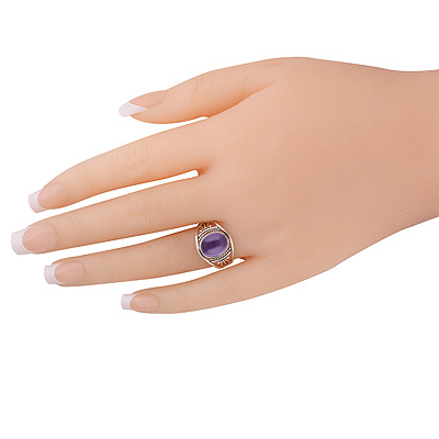 Beautiful Rawa And Wire Work Around Amethyst Oval Shape 925 Sterling Solid Silver Ring