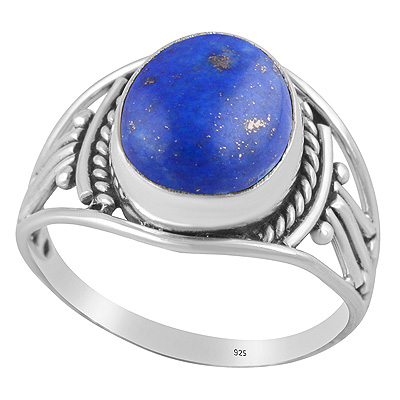 Beautiful Rawa And Wire Work Around Lapis Oval Shape 925 Sterling Solid Silver Ring