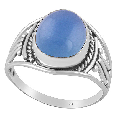Beautiful Rawa And Wire Work Around Blue Chalcedony Oval Shape 925 Sterling Solid Silver Ring