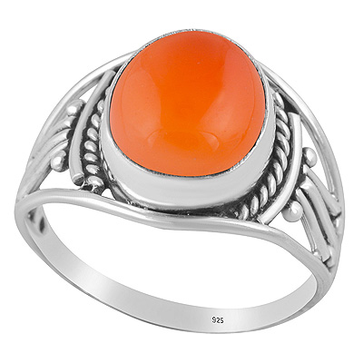 Beautiful Rawa And Wire Work Around Carnelian Oval Shape 925 Sterling Solid Silver Ring