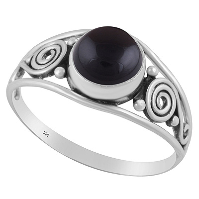 Gorgeous Rawa & Coil Work Around Black Onyx Round Shape 925 Sterling Solid Silver Ring