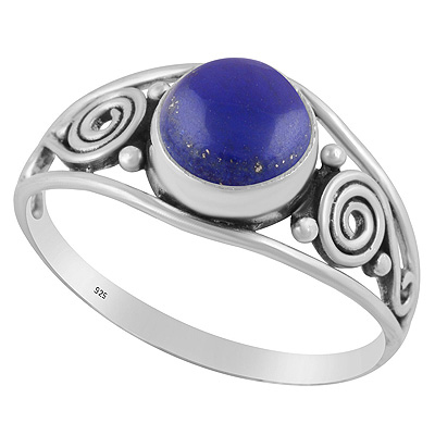 Gorgeous Rawa & Coil Work Around Lapis Round Shape 925 Sterling Solid Silver Ring