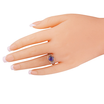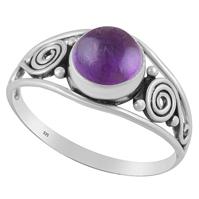 Gorgeous Rawa & Coil Work Around Amethyst Round Shape 925 Sterling Solid Silver Ring